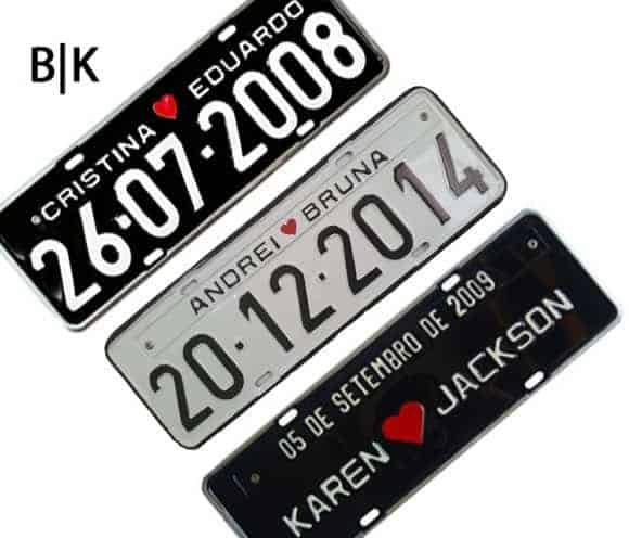 Placas de Carro Personalizadas em Alto Relevo: Adicione um toque especial e glamouroso aos seus eventos! Nossas placas de carro personalizadas em alto relevo são perfeitas para casamentos, placas da noiva, noivados, bodas, namoros, aniversários, nascimentos, clubes de futebol e automóveis. Com um design exclusivo e de alta qualidade, essas placas são decorativas, comemorativas e garantem memórias inesquecíveis. Personalize a sua hoje mesmo e transforme qualquer ocasião especial!